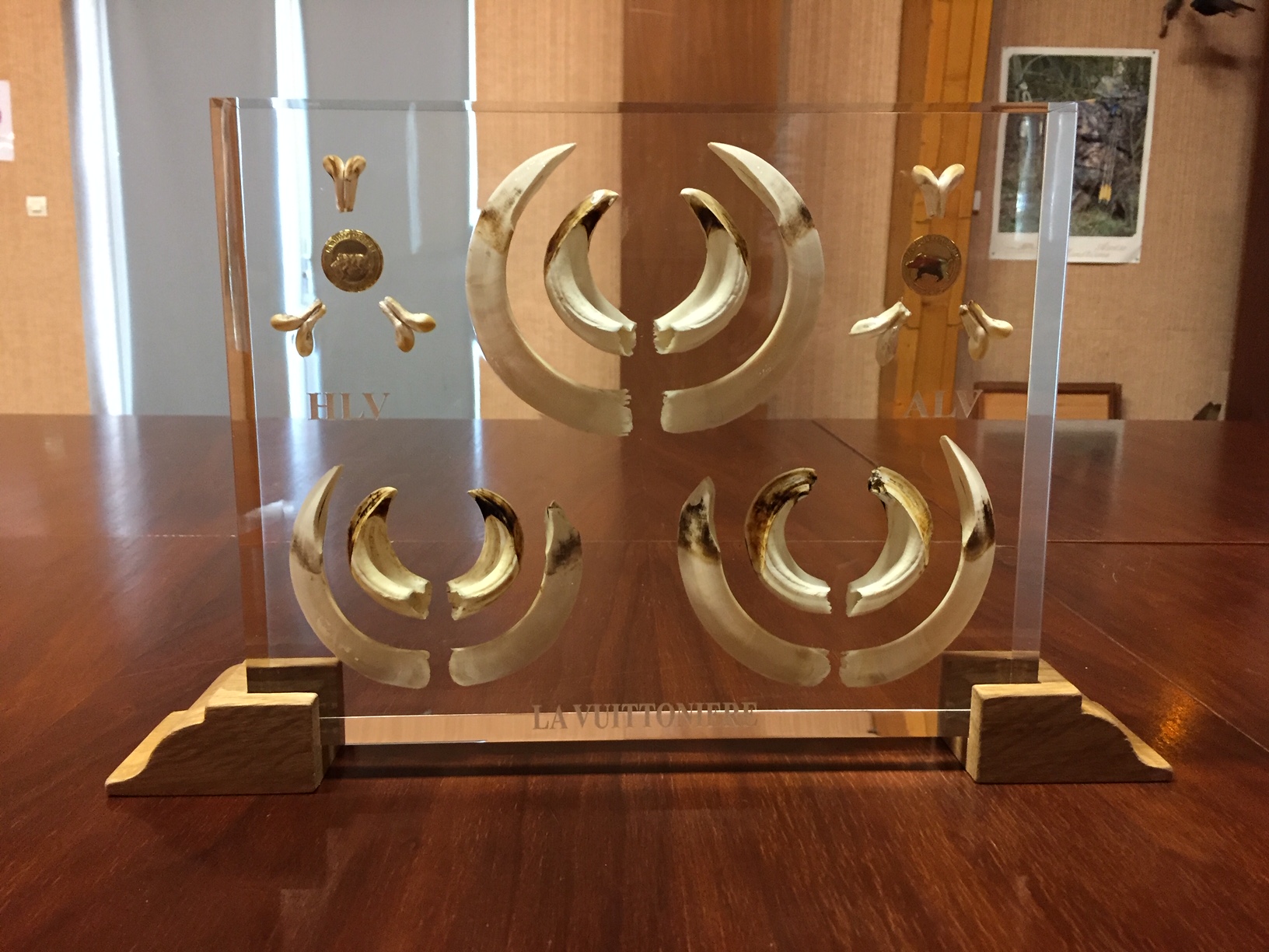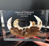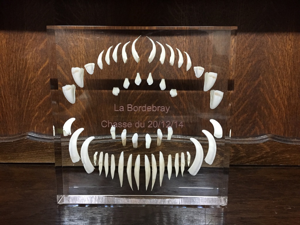 Trophee de sanglier avec gravure coloree